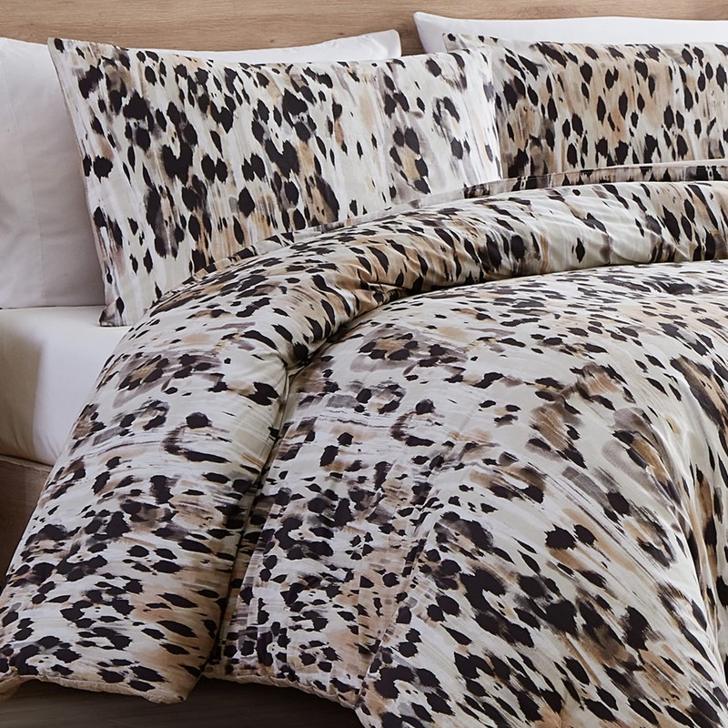 Kenneth Cole New York - Queen Comforter Set, Cotton Reversible Bedding Set, All Season Designer Home Décor (Abstract Leopard Brown, Queen)