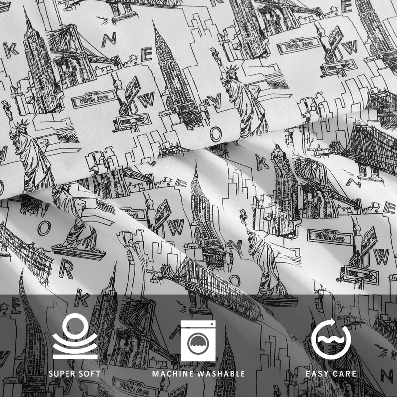 - FEATURES: The Kenneth Cole NYC Landmarks sheet set features all over NYC print in black on a white ground. The sheet collection is crafted from 100% premium polyester microfiber and offers exceptional comfort, getting softer with each wash, making this set ideal for year-round use. The Kenneth Cole Sheet Sets coordinate beautifully with other Kenneth Cole Bedding, sold separately.