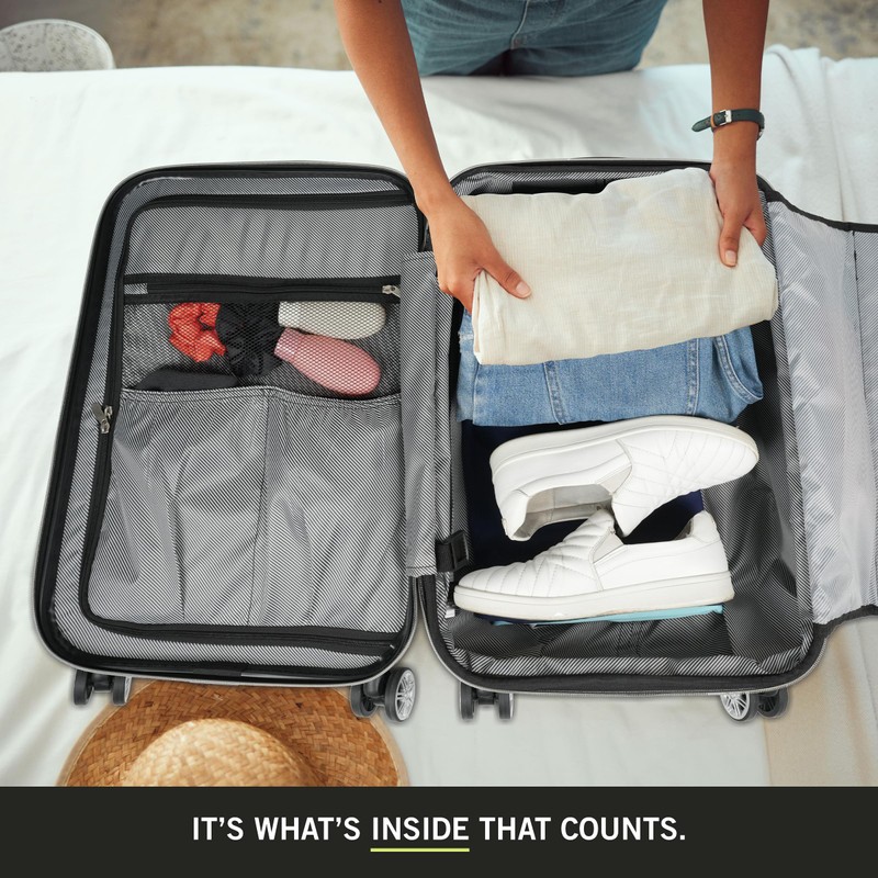 - Durable hardside diamond-textured exteriors and fully lined, tear-resistant interiors.