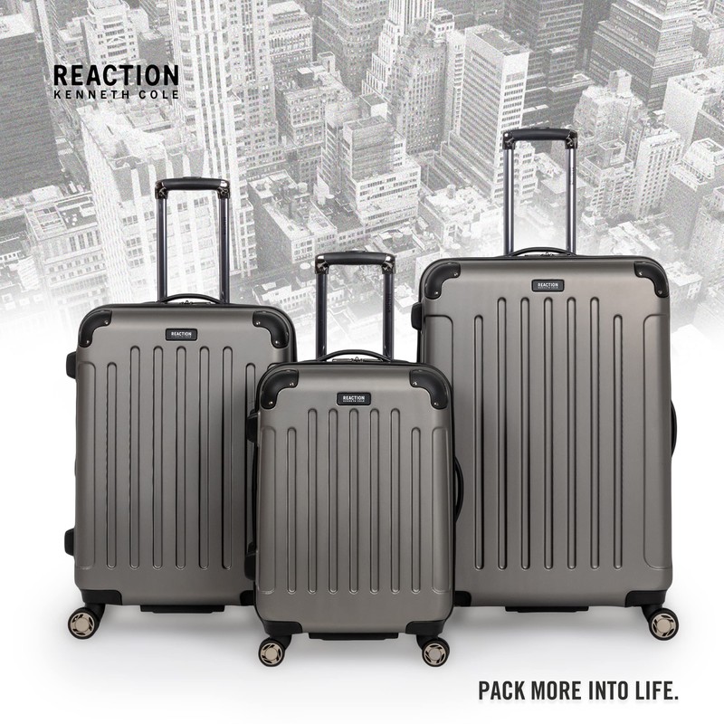 Kenneth Cole REACTION Renegade Luggage Expandable 8-Wheel Spinner Lightweight Hardside Suitcase, Silver, 28-Inch Checked