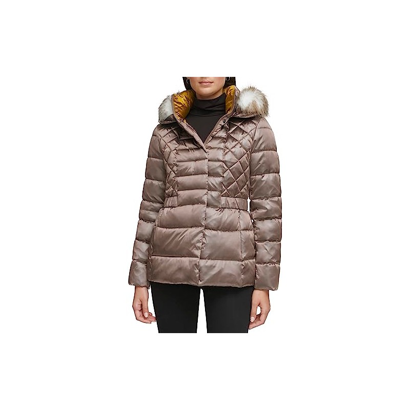KENNETH COLE Women's Puffer Jacket, Irridescent Taupe, Large