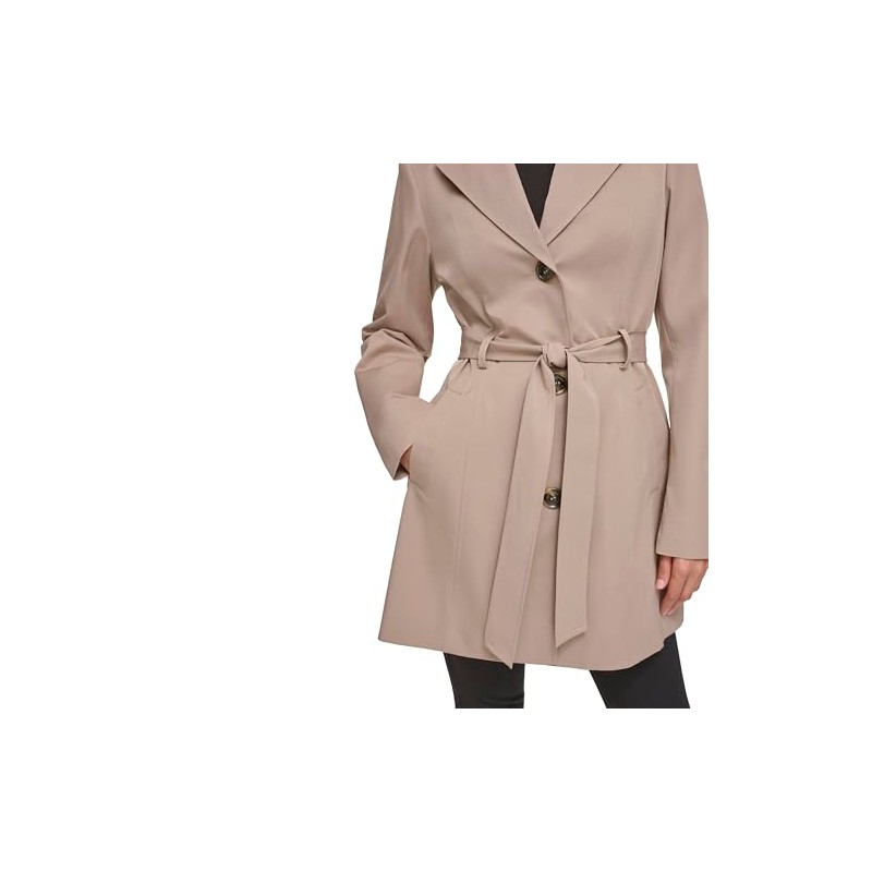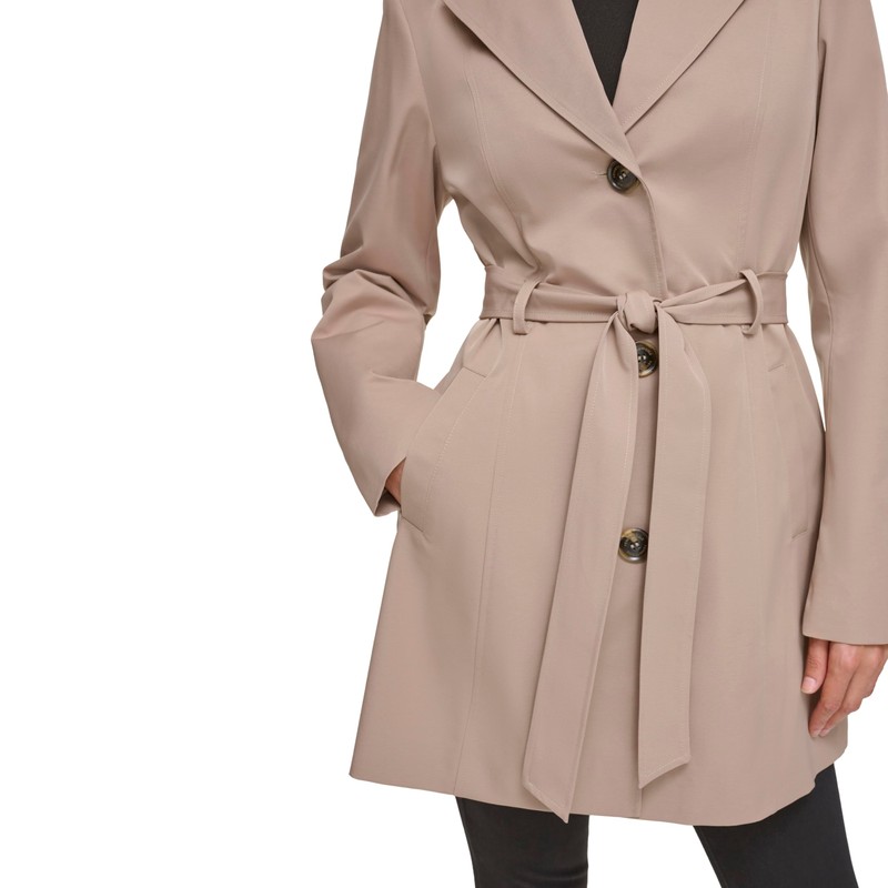 Kenneth Cole Women's Trench Coat with Waist Tie Belt and Notch Collar, Khaki