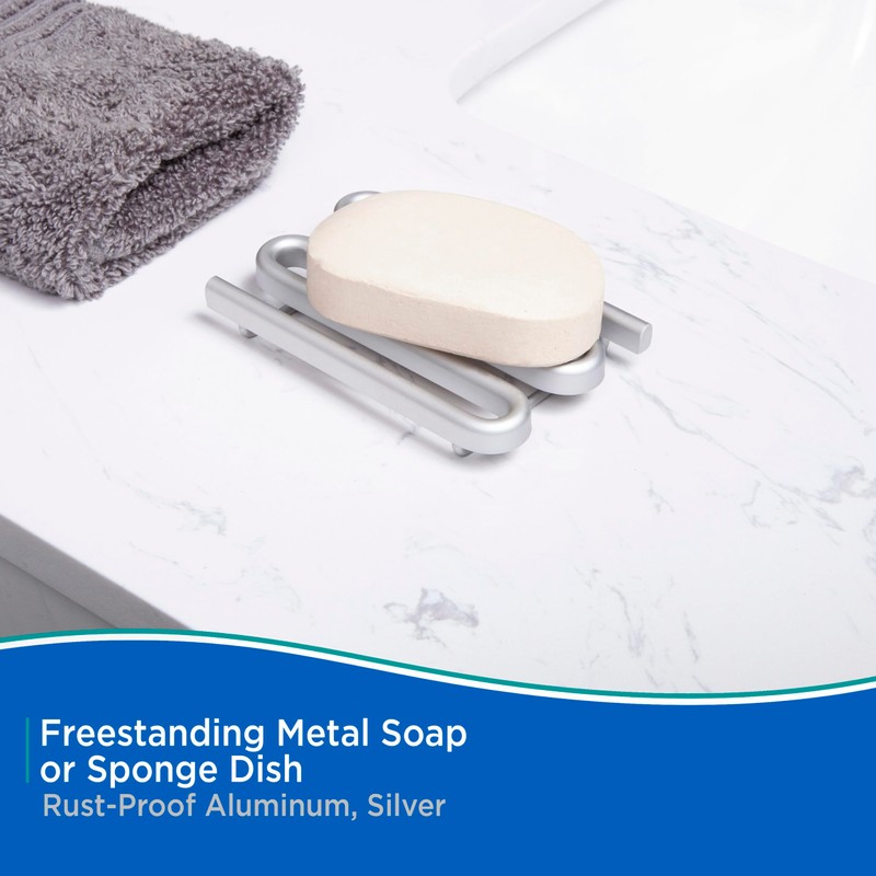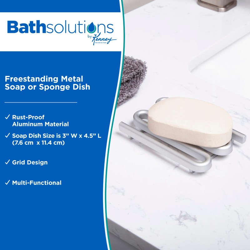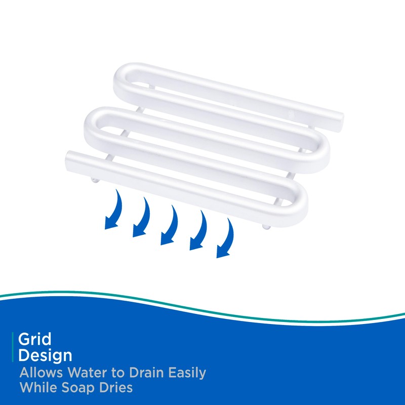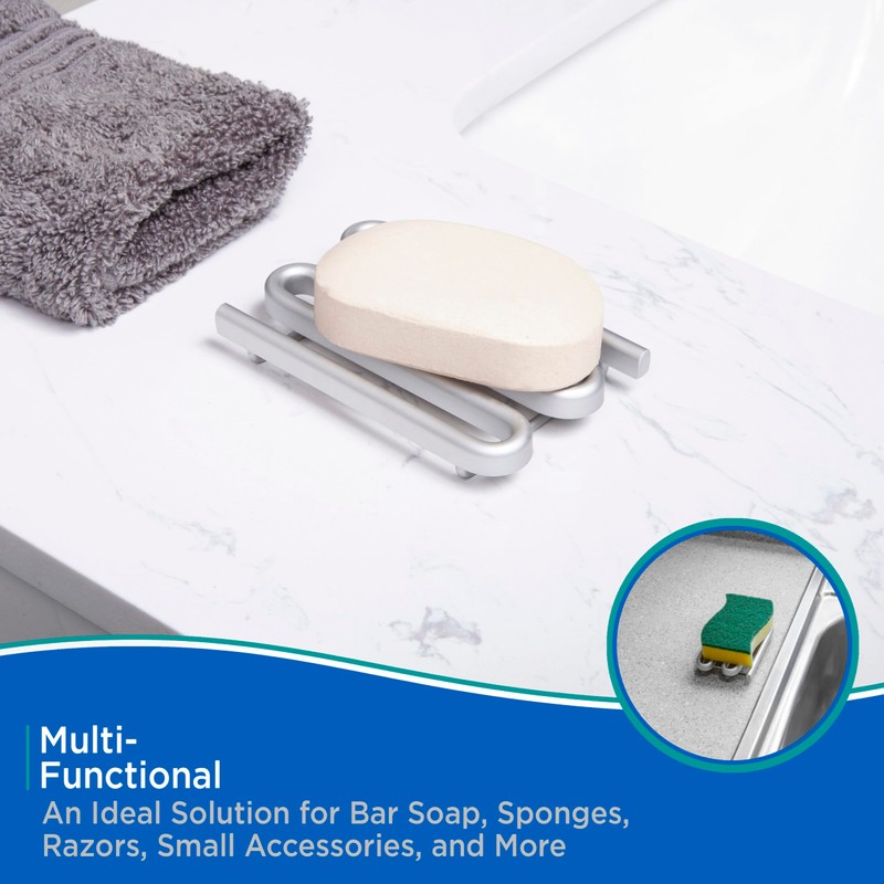 • Soap saver holds bar soap, sponges, scrubbies, dish brushes, razors, small accessories, and more