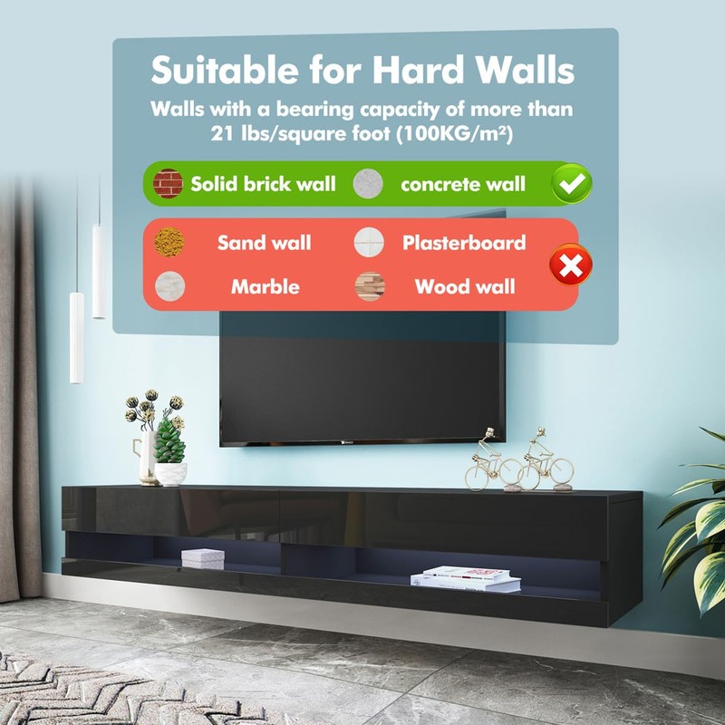 - Up to 80 Inch TV Screen - - Floating TV stand for 80 inch, 75 inch, 70 inch, 65+ inch, 65 inch, 60 inch,55 inch,50 inch tv stand. Wood tv stand can be suitable for all types of televisions such as wall-mounted or vertical type. It is suitable for living room, bedroom.