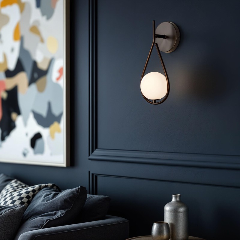 Kenroy Home Teardrop Wall Sconce with Frosted Opal Glass Globe, Black