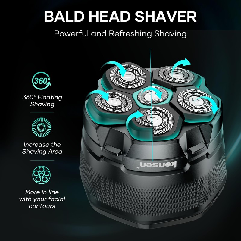 - kensen 6D Magnetic Blade Head Shaver Replacement Heads - kensen men's rotary head shavers use a unique 6D rotating floating head and double-layer blade design, which can achieve perfect 360-degree skin contact and can quickly shave beard or soft, hard and thick hair.