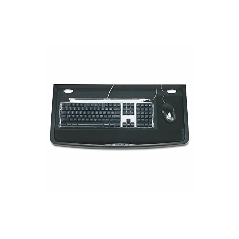 Frees up desk space and provides a comfortable work envionment. Extra-wide 26" tray with integrated mousing area (includes wrist rest and mouse pad) that fits all keyboards. Drawer can be mounted at one of three heights for customized comfort using your unique SmartFit comfort color. Easy installation and cable management.