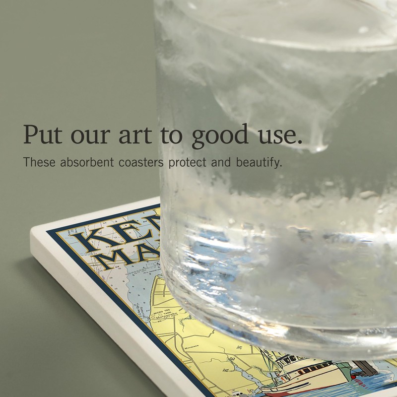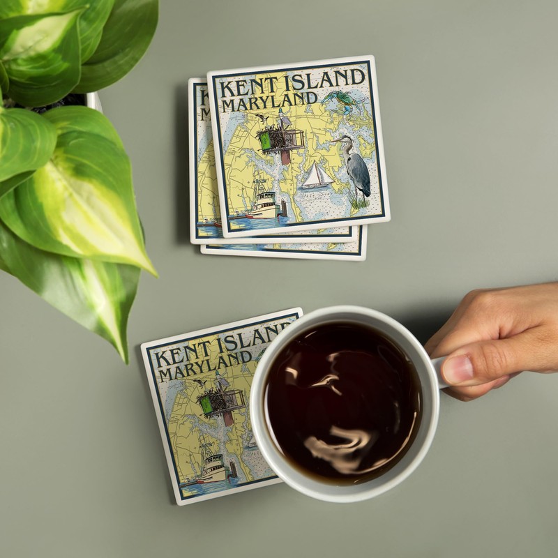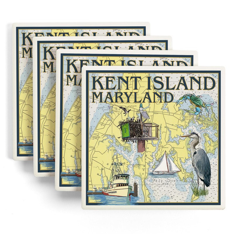 - Kent Island, Maryland, Nautical Chart (Absorbent Ceramic Coasters Set of 4 Matching Images, Cork Back, Kitchen Table Decor), each coaster measures 4x4 inches.