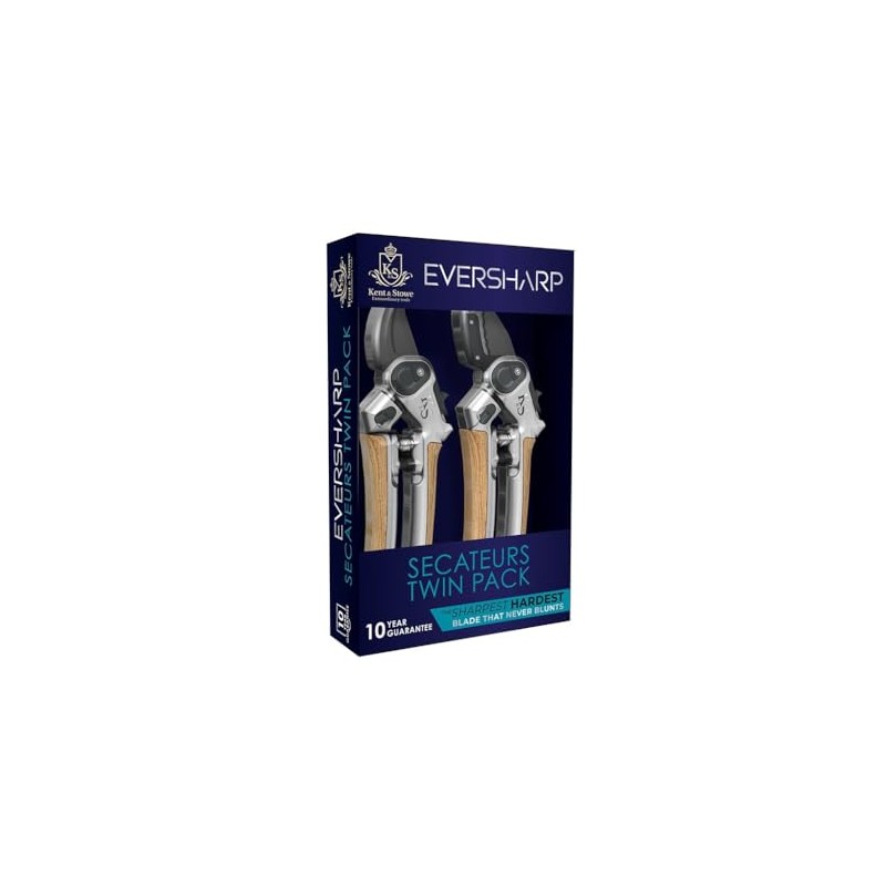 Kent & Stowe 70109175 Eversharp Secateurs Twin Pack/Gift Set, Containing Ash Wood Handled All Purpose & Hard Wood (Anvil) Secateurs, Perfect for Pruning Green & Hard Wood