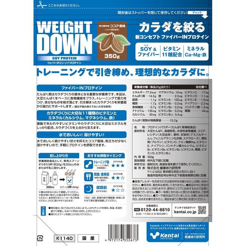 Kentai Weight Down Soy Protein, Cocoa Flavor, , ,