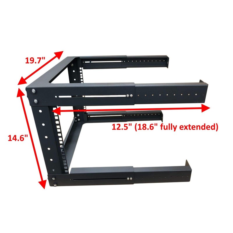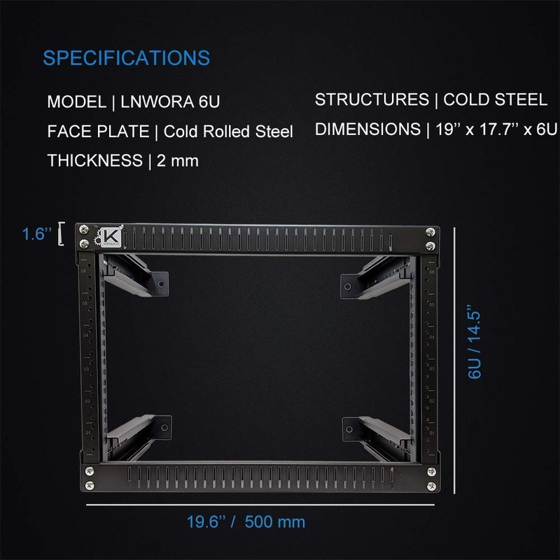Kenuco 6U Adjustable Depth Wall Mount Open Frame Steel Network Equipment Rack 17.75 Inch Deep
