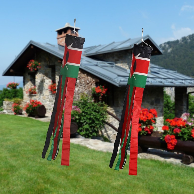 Kenya Kenyans Flag WindSock 2 Pack Stripes Wind Socks For Yard And Garden Flag,Front Porch Hanging Waterproof Suitable For Every Season,40Inch.