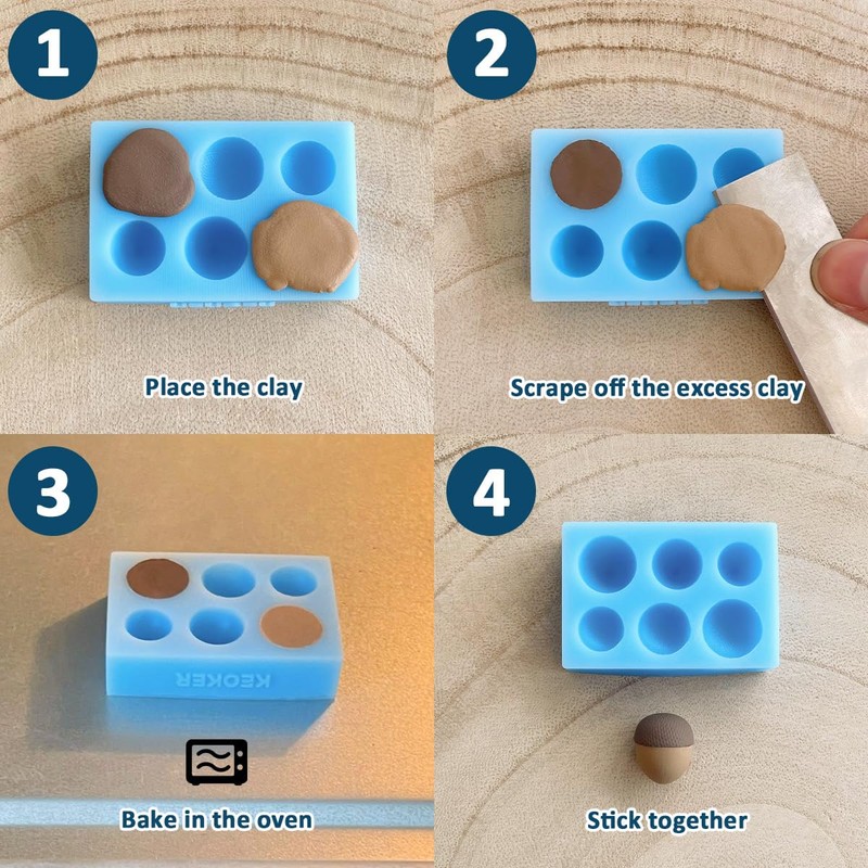 - Our mold can create polymer clay acorns in three different sizes. After using our mold to create two separate parts, you can attach them together to form a complete acorn
