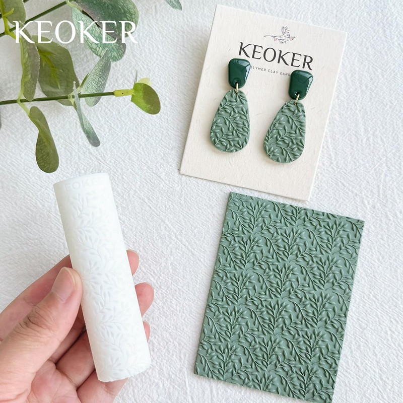 KEOKER Polymer Clay Texture Roller, Polymer Clay Roller for Making Earrings, Like Polymer Clay Texture Sheets, Great Work with Polymer Clay Cutters (Olive Leaves)