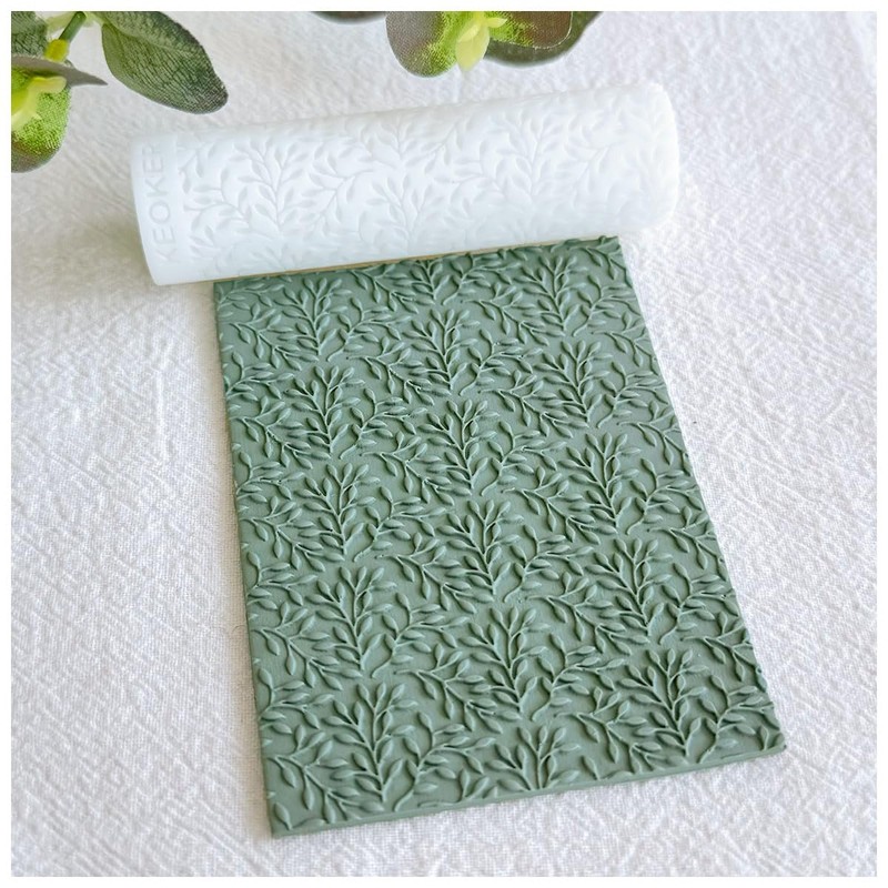 KEOKER Polymer Clay Texture Roller, Polymer Clay Roller for Making Earrings, Like Polymer Clay Texture Sheets, Great Work with Polymer Clay Cutters (Olive Leaves)