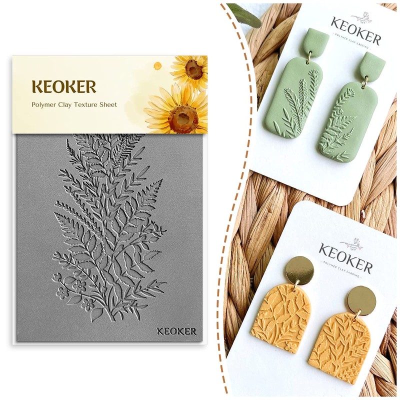 Keoker Polymer Clay Texture Sheets, Clay Texture Mat for Making Earrings Jewerly, Polymer Clay Earrings Tools (No.8 leaf)