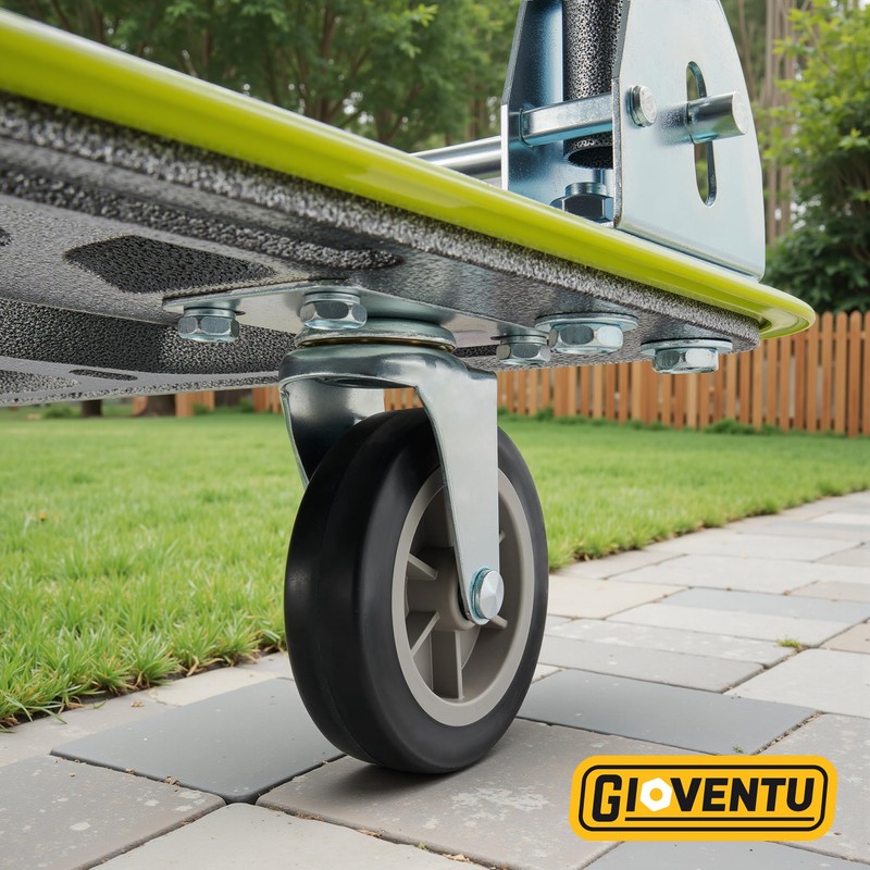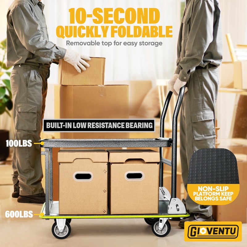 This platform cart can be folded quickly in 10 seconds, compact folding size only 28.7"x18.7", weight only 24lbs, saving space in the utility room and car compartment, easy to store, convenient to travel, and ready to use at any time.