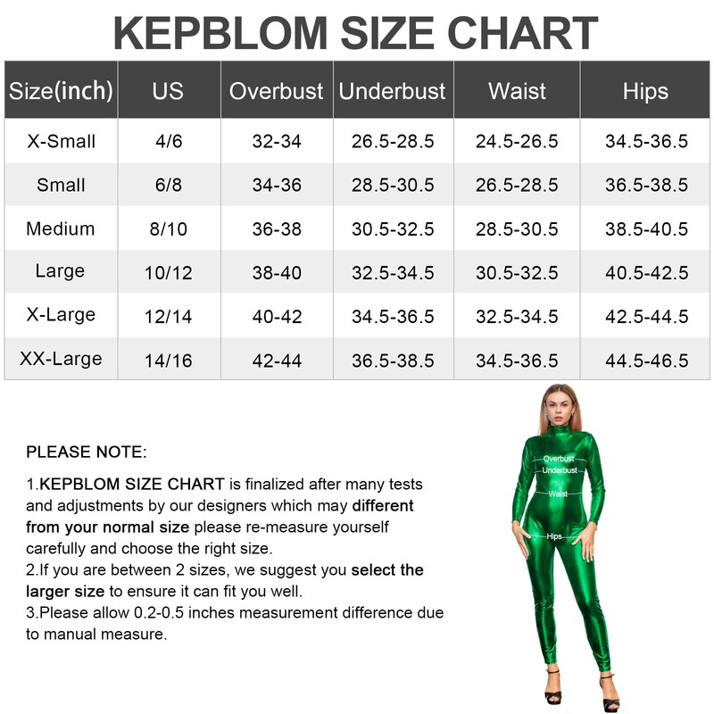 Kepblom Shiny Metallic Unitard Turtleneck Long Sleeve Footless Zentai Suit Catsuit Dancewear, Green, Small