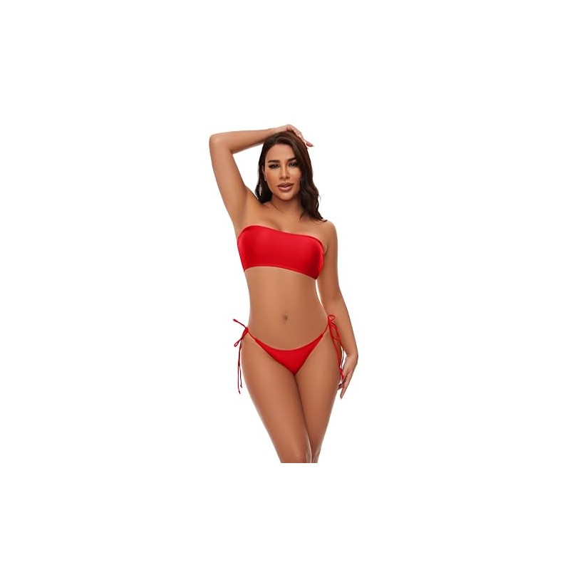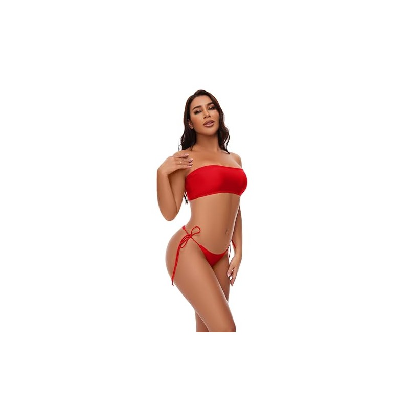 Kepblom Women's Thong Bikini Bottoms: String Tie Side Bathing Suit Bottoms, Red, M