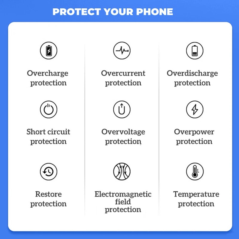 【The Safety Of The Power Bank】Built-in intelligent chip automatically identifies the charging device, Safety circuit design, multiple protection - overcharge, over-discharge, overcurrent, short circuit, overvoltage, overtemperature.