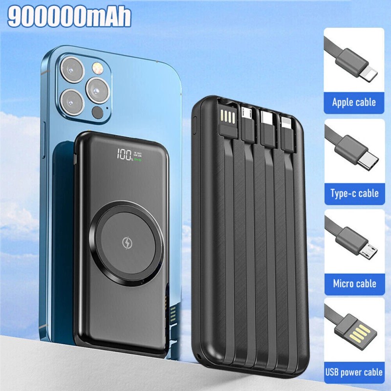 KEPEAK 900000mAh Wireless Power Bank Fast Portable Charger External Battery 4 Cable