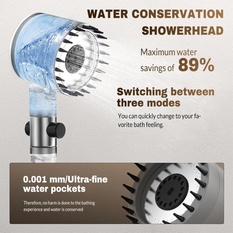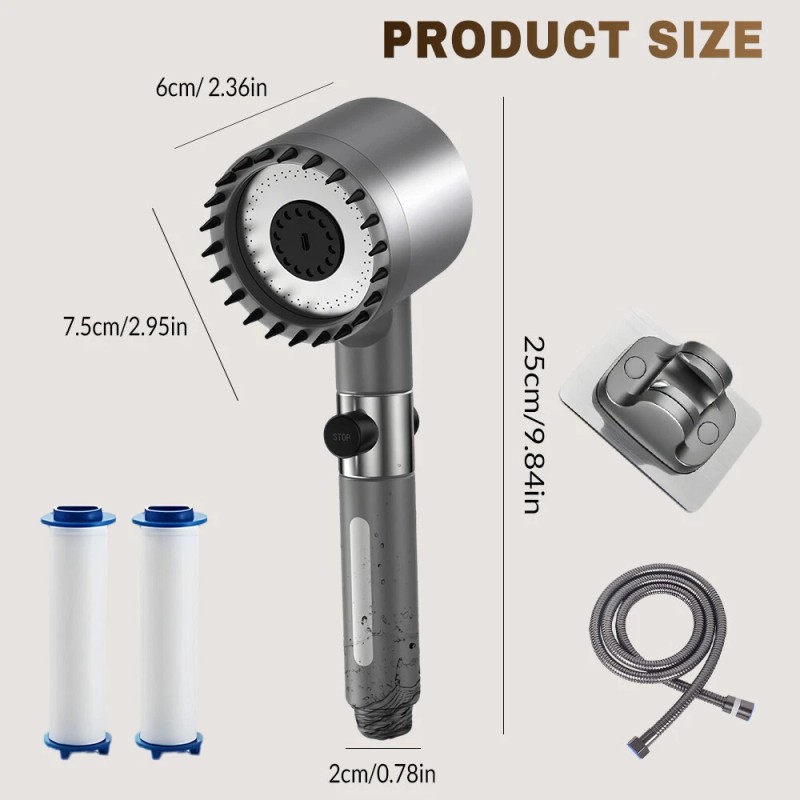 - Features: High Pressure, Quick Cleaning, Waterfall, Massage Head, with Handheld, 3 Spray Mode, with On/Off Switch, Adjustable Settings, With Hose, Filtered, With 2 Filters, Detachable Filtered