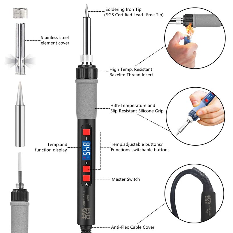 • 【Complete Soldering Iron Kit】: Kit includes Soldering iron, Multimeter, Helping hand soldering station, Desoldering pump, Soldering iron tips, Soldering wire, Tweezers, Screwdriver, Heat shrink tubing and Insulating Tape etc. A set of professional soldering tools to meet the daily soldering needs of electronics enthusiasts.
