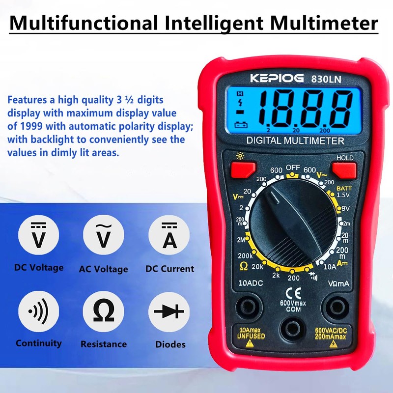 • 【Versatile Digital Multimeter】: Measures AC and DC voltages, resistance, current, diodes, etc. Easy to use and operate. It is an essential tool for industrial and household electrical testing and repair. This multimeter comes with a stand, silicone protective case, and backlight function.