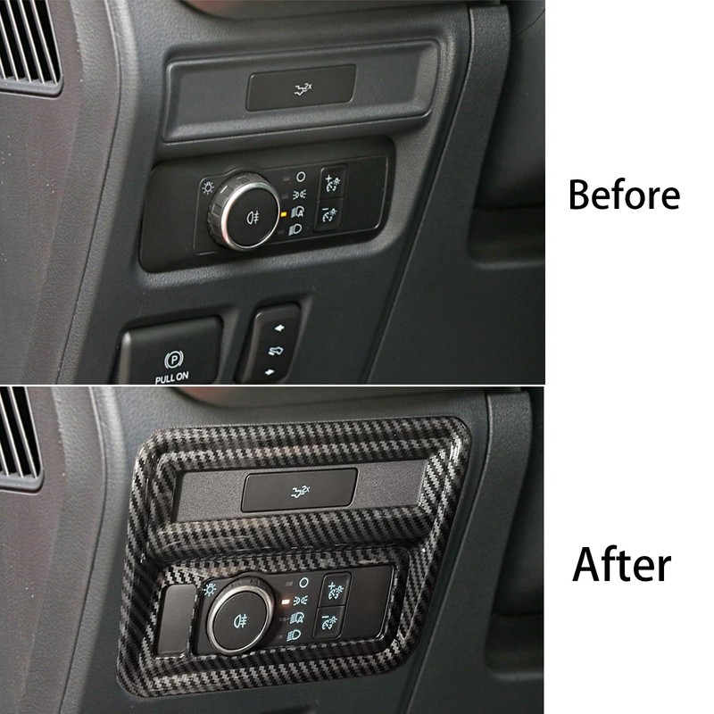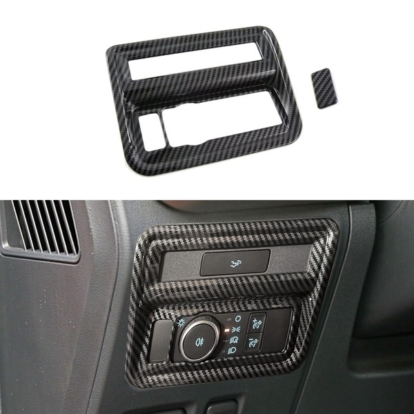 Keptrim for 2021 2022 2023 Ford F-150 ABS Carbon Fiber Side Console Headlight Switch Button Panel Trim, 1pc