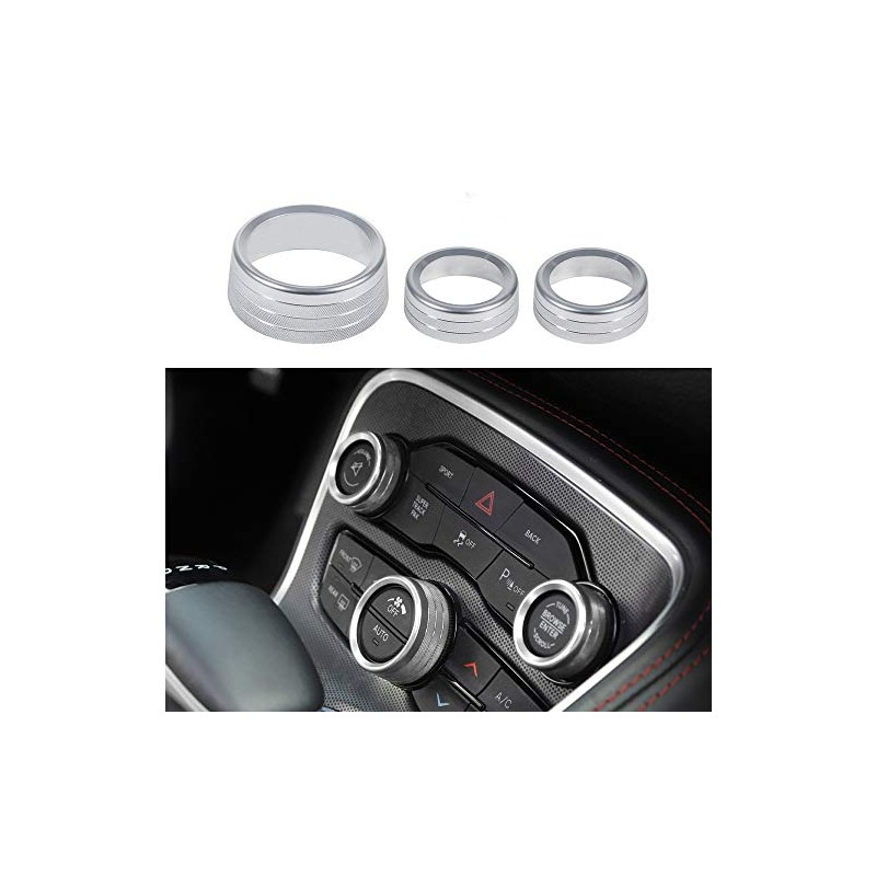 Keptrim Keptrim AC Knobs Air Conditioner Switch Button for 2015-2020 Dodge Challenger Charger Chrysler 300 300s, for 2013-2018 Ram, Silver Aluminum, 3pcs