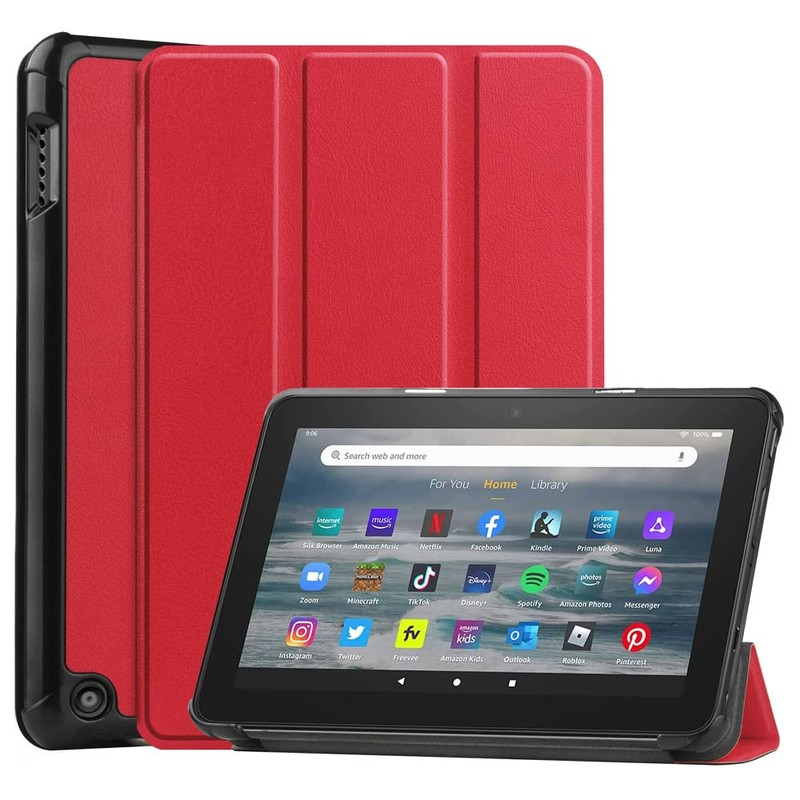 Kepuch Custer Case for Fire 7 2022 Release,Ultra-Thin PU-Leather Hard Shell Cover for Fire 7 2022 Release - Red