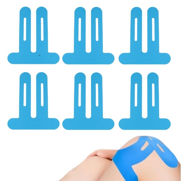 KEQAR 6 PCS PreCut Waterproof & Elastic Kinesiology Tapes for Knee Pain, Physio Tape Without Shears (Blue)