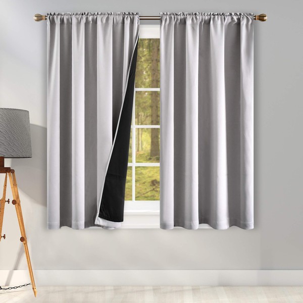 KEQIAOSUOCAI 100PCT Blackout Curtains with Double Layer - Thermal Insulated Full Blackout Energy Efficiency Window Draperies for Dining Room (Light Grey 2 Panels 42 by 45 Inch)