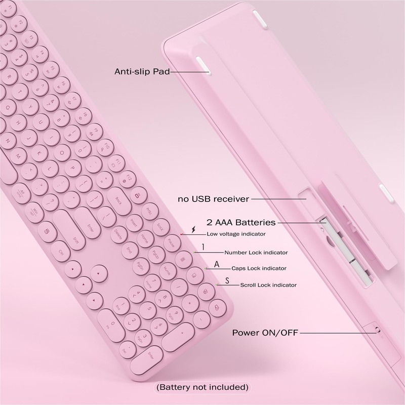 • 110 Keys Round Colorful Keyboard: This wireless keyboard features a sleek, full-size layout with 110 retro-style round keys, offering a unique design that adds color to your workspace. Perfect for typists and those who love a bit of flair