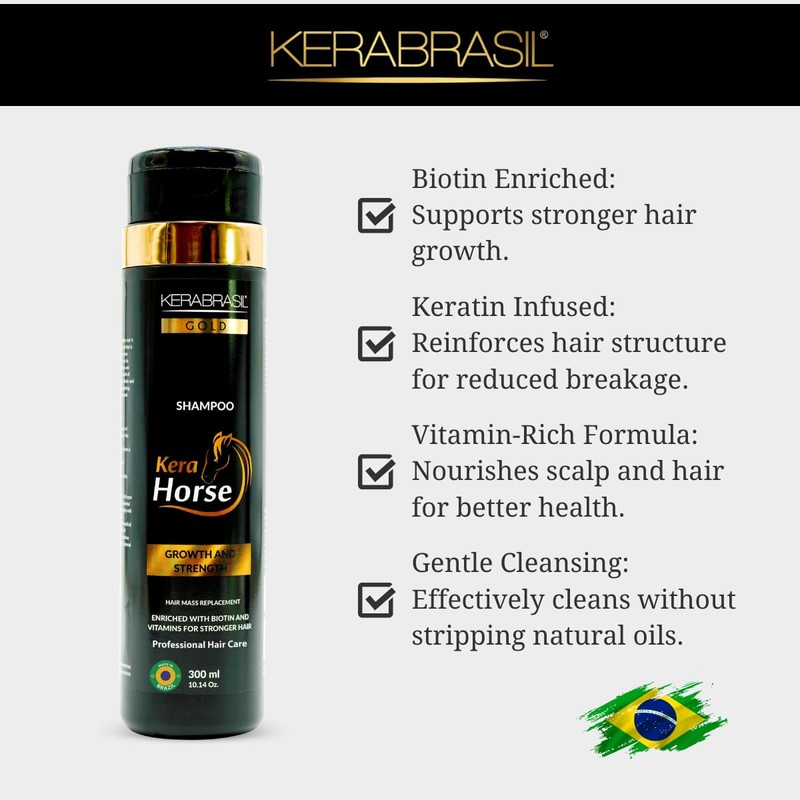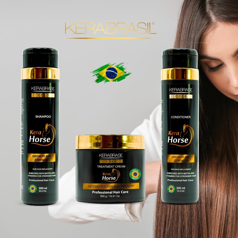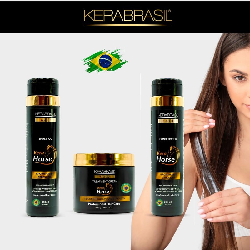 KERABRASIL Kerahorse Hair Strengthening Bundle | 300ml Shampoo | 300ml Conditioner | 500g Deep Repair Treatment | Biotin and Keratin Enriched