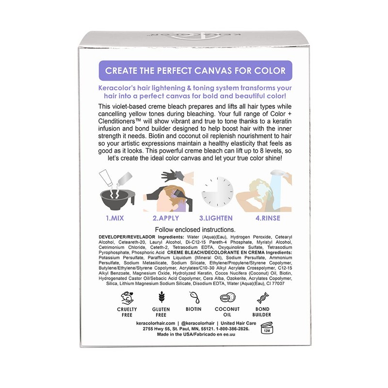 Keracolor Keracanvas Hair Bleach Kit, Complete Hair Lightening & Toning System, Lifts Up to 8 Levels, Neutralizes Brassiness