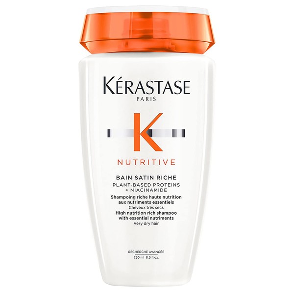 KÉRASTASE Bain Satin Riche | Shampoo para Cabello Muy Seco | Limpia Profundamente, Restaura la Nutrición e Hidrata el Cabello | Con Proteínas de origen vegetal y Niacinamida | 250ml