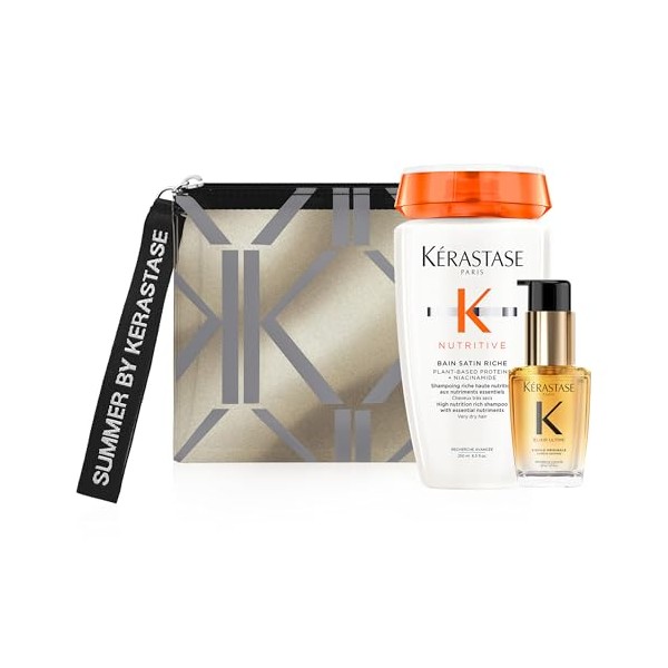 KÉRASTASE SET Shampoo Nutritive Bain Satin Riche 250 ml + Elixir Ultime formato travel size 30 ml |Nutre profundamente el cabello y aporta brillo intenso