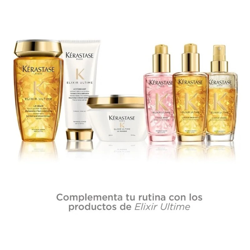 Transforma tu rutina capilar diaria en un ritual de lujo con el Kérastase Shampoo Elixir Ultime L'bain. Diseñado especialmente para revivir el cabello opaco, este elixir dorado ofrece una experiencia sensorial que redefine el significado del cuidado capilar.