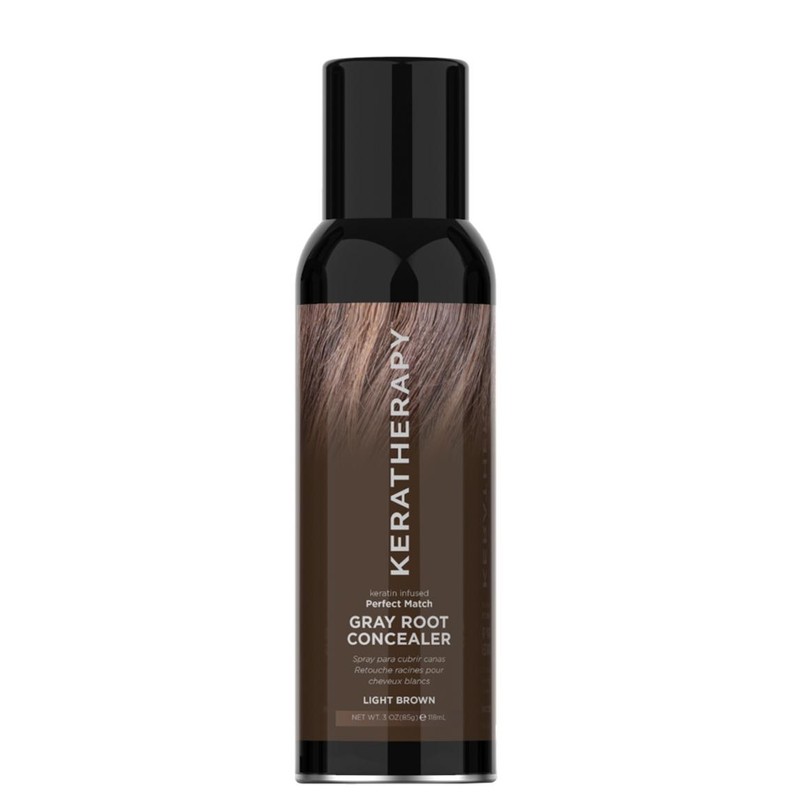 Keratherapy Gray Root Concealer 118ml - Light Brown is a temporary color spray that instantly covers your gray roots in between color services.