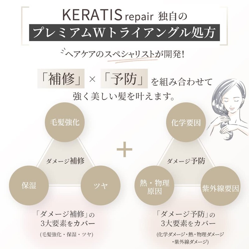 - KERATIS repair's proprietary premium W triangle formula provides "damage repair" and "damage prevention"