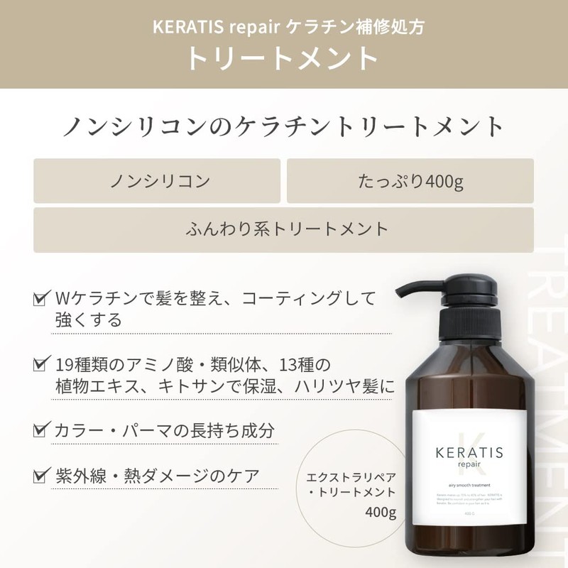 - (Non-Silicone Keratin Treatment) Align your hair with W keratin and coat it to strengthen it. Generous 14.1 oz (400