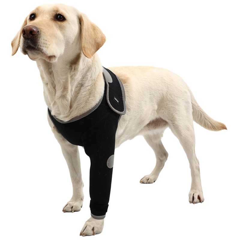 - Dog Collar Cone Alternative: The dog leg sleeve provides elbow protection in all positions, standing, walking, running, jumping, sitting or lying down. The adjustable straps come with a self-adhesive wrap with a strong Velcro that can be securely wrapped around your dog's body, perfect for any pet size.