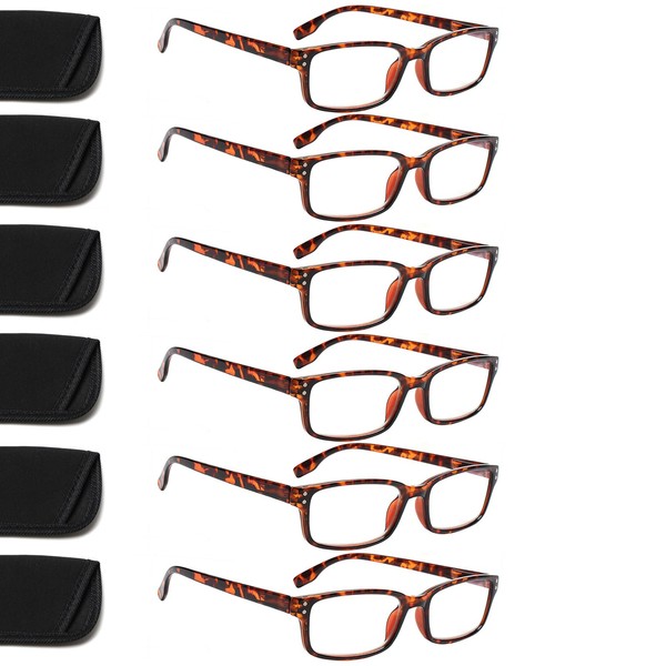 Kerecsen 6-Pack Reading Glasses Blue Light Blocking,Spring Hinge Readers for Men Women,Computer Eyeglasses (6 Tortoise, 0.75, multiplier_x)