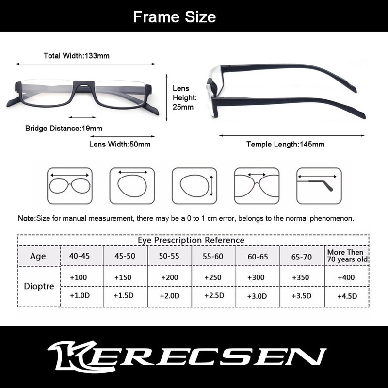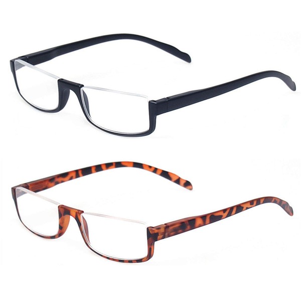 - This is a kind of semi-rimless reading glasses, you can wear reading glasses while watching TV and can also look down to read, compared to the old reading glasses, you do not have to wear reading glasses while reading down again. They work well, the reading glasses don't slip off your nose when you look down at a book, they are light, and you will really appreciate the switch between near and far vision that half-framed reading glasses give you.