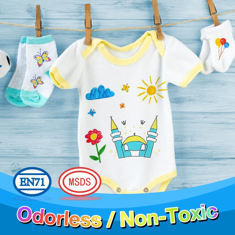 - Great DIY colouring pens: with this set of textile pens, we can transform and design clothes, shoes, trainers, fabric bags, bibs, white t-shirts children and bodysuits for baby shower. Teenagers will love the textile pen to paint fabric sneakers with them. When a party is coming, you can paint words and patterns on the theme on the bright fabric to make the party even more fun and individual!