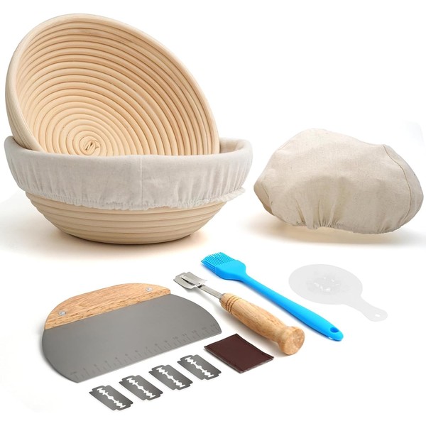 - Complete Baking Set: Includes 2 banneton baskets, basket covers, metal scraper, plastic scraper, scoring blade, and case for all your baking needs.