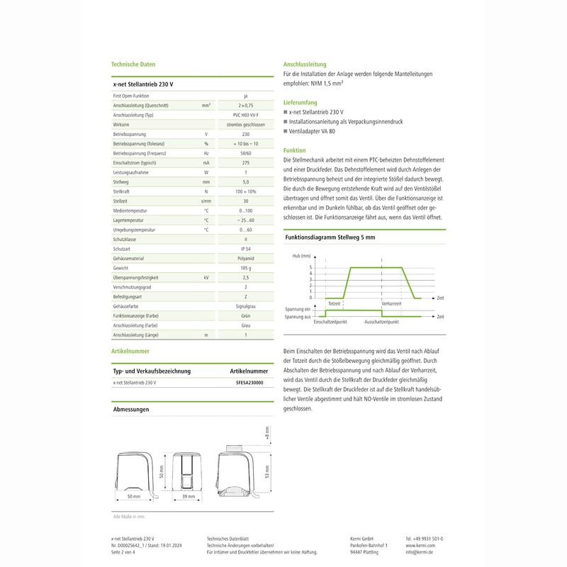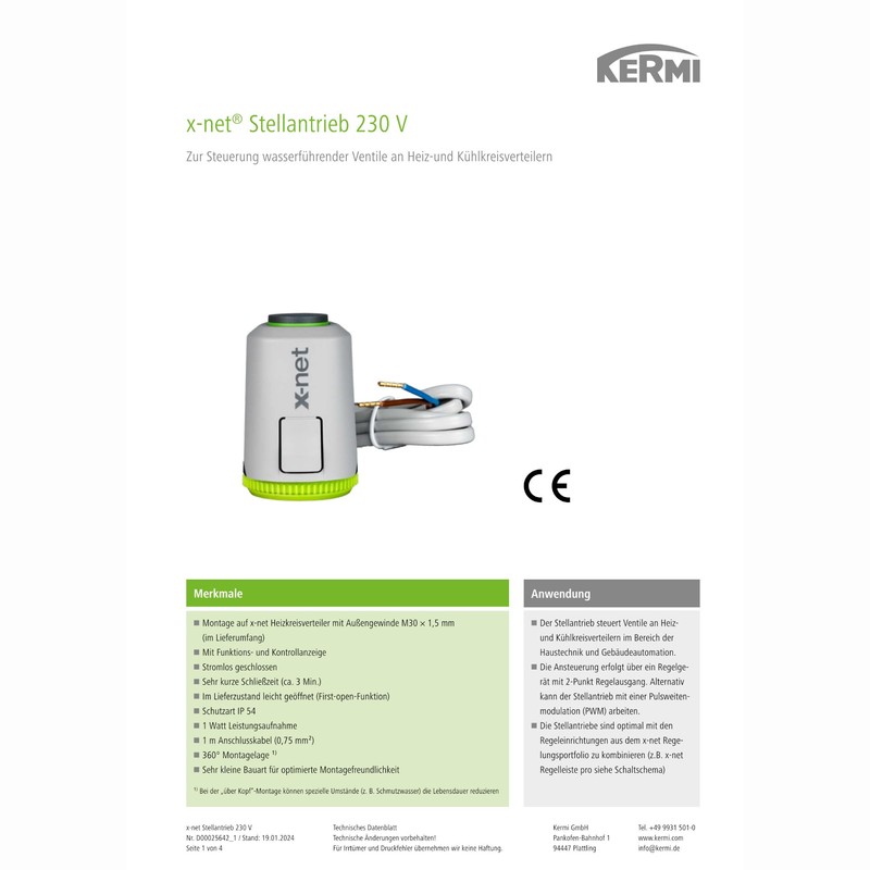 Kermi x-net Actuator Closed Currentless 230 Volt SFE SA 230 000