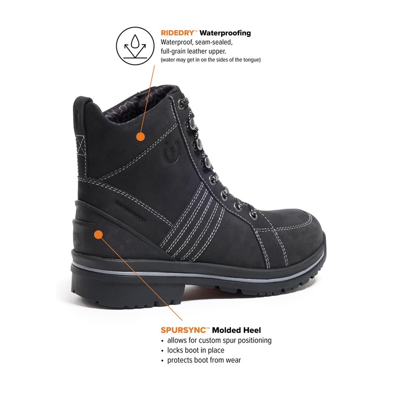 - OrangeZone ATO non-slip outsole has durable all-terrain traction areas for safety with a 1” heel for security in the saddle