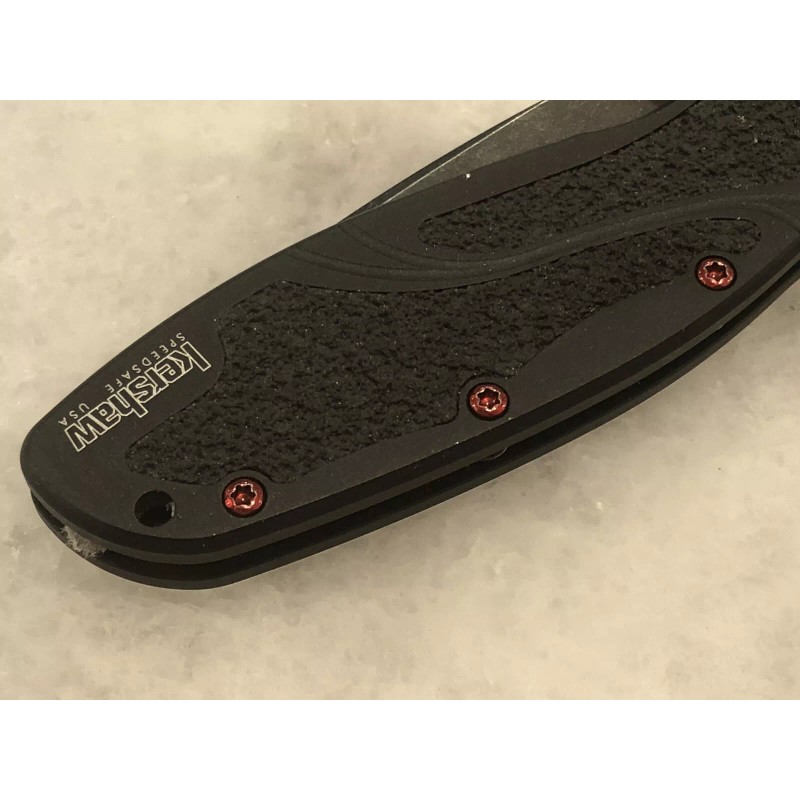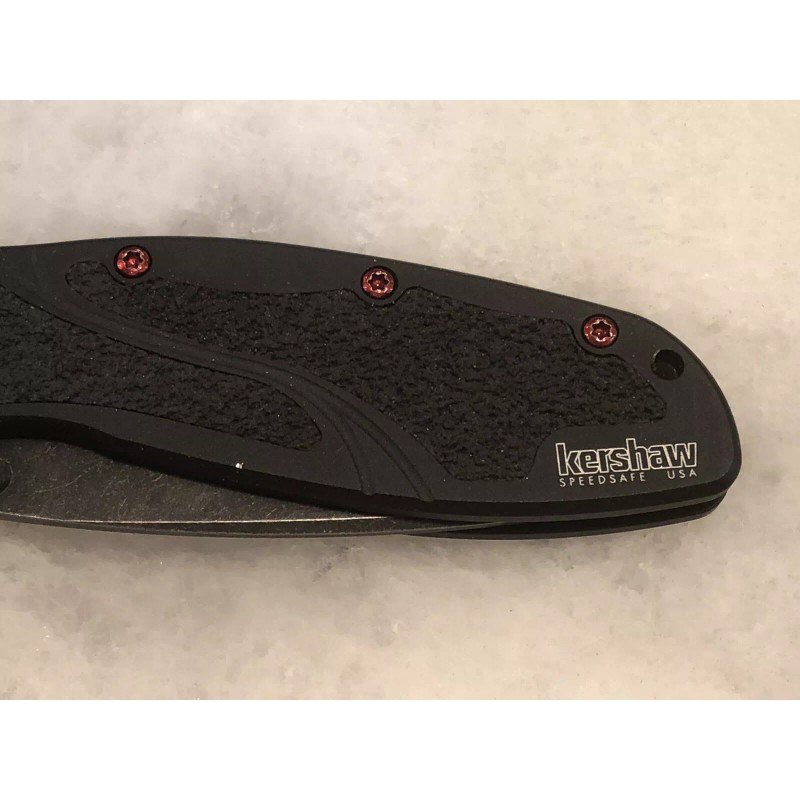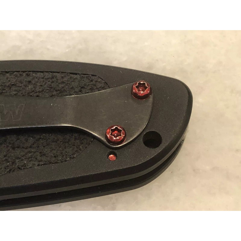 Translucent Red Screws Set For Kershaw 1670 Blur Handle & Pocket Clip - Set of 5pcs. These are high quality 18-8 stainless steel upgrade replacement screws. T8 Torx drive less likely to strip. Translucent Red Finish. Translucent Colors looks similar to Anodize Titanium but by far more durable. Color won’t change or fade upon touch. Easy to maintain and clean.